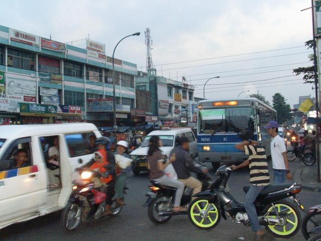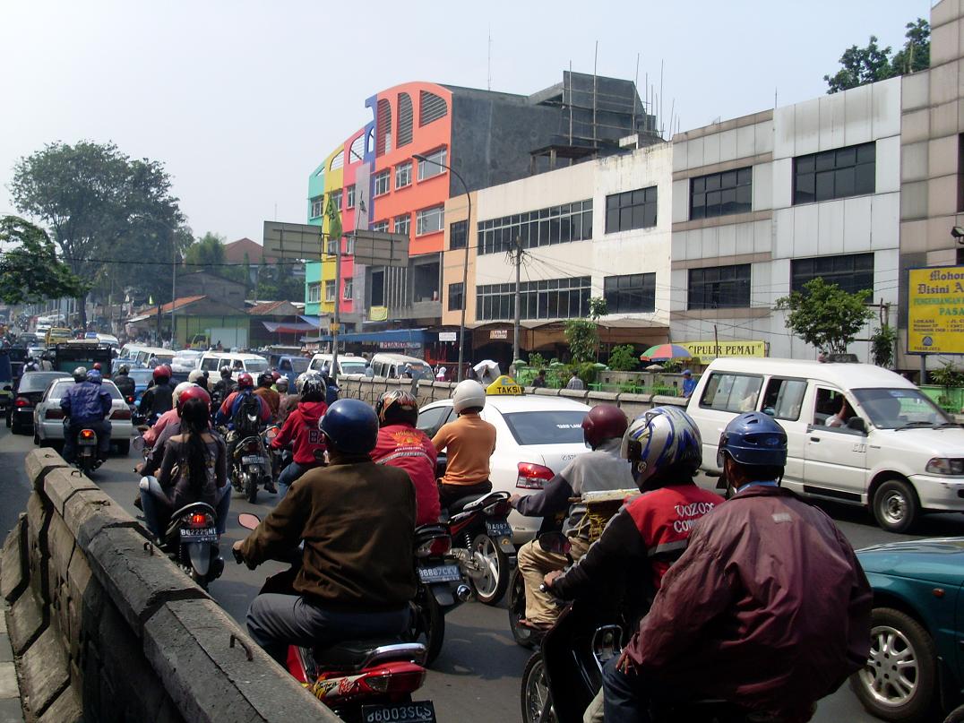 O trânsito de lá é uma loucura! É moto pra tudo que é lado, todo mundo xingando todo mundo, buzinaço o dia inteiro e um calor dos infernos! CAOS TOTAL! Mermão, a parada era tão caótica que chegava a ser engraçada! Toda vez que eu voltava pra casa, eu voltava rindo vendo aqueles motoqueiros passando um por cima dos outros, o motorista do busão xingando todo mundo e os carros tirando fino! Pra melhorar ainda mais o quadro caótico daquela cidade, de dez em dez minutos subia um violeiro desafinado no busão, ficava uns 15 minutos cantando em língua local e tentando fazer uns trocados. Sinfonia de Jakarta: Gritos, buzinaço, ronco dos motores e viola desafinada.