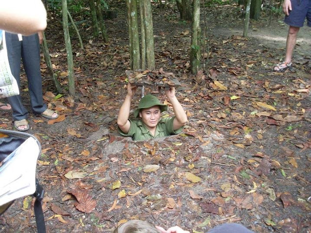 Cara, os vietnamitas não tinham grana e armas da última geração, mas tinham raça. Perto da cidade de Ho Chin, é possível visitar parte da intricada rede de túneis que os vietnamitas utilizaram pra poder se deslocar pela selvas sem serem perseguidos pelos americanos.