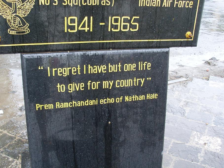 “Eu me arrependo de ter nada mais do que uma vida para servir ao meu país” placa posta em frente ao Taj Mahal Hotel!