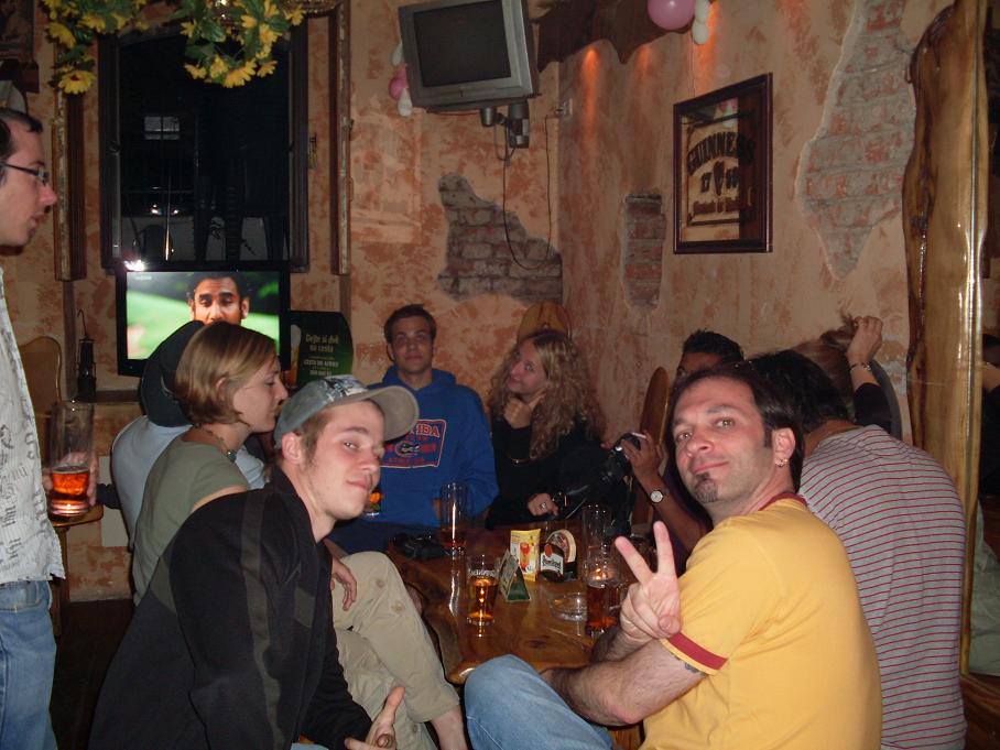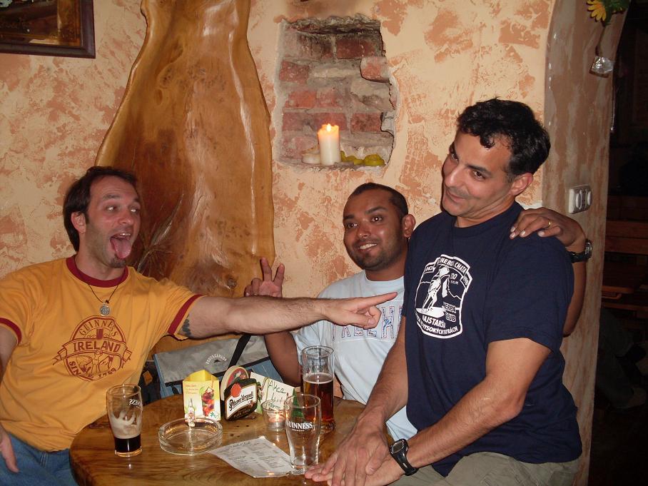O único momento que merece destaque em nossa primeira noite em Praga foi quando conhecemos um negão alemão gigantesco e um romeno gente boa que moravam em Munique. Entre umas tulipas de chopp e outras, segue o diálogo: