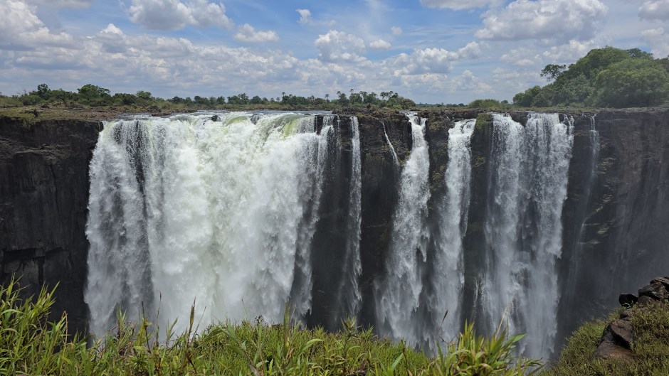 Cheguei ao Zimbábue porque queria ver as Victoria Falls, as Cataratas do Iguaçu da África, que ficam exatamente na fronteira entre Zâmbia e Zimbábue. Apesar de a cidade do lado zimbabuano literalmente se chamar Victoria Falls — porque vive única e exclusivamente para isso — e apesar da maior parte dos voos internacionais chegar justamente ali, eu preferi me hospedar na Zâmbia em Livingstone. A cidade de Livingstone é muito mais estruturada, maior, com mais opções de tudo, enquanto Victoria Falls é praticamente uma cidade-monotema: existe, respira e funciona ao redor da cachoeira.