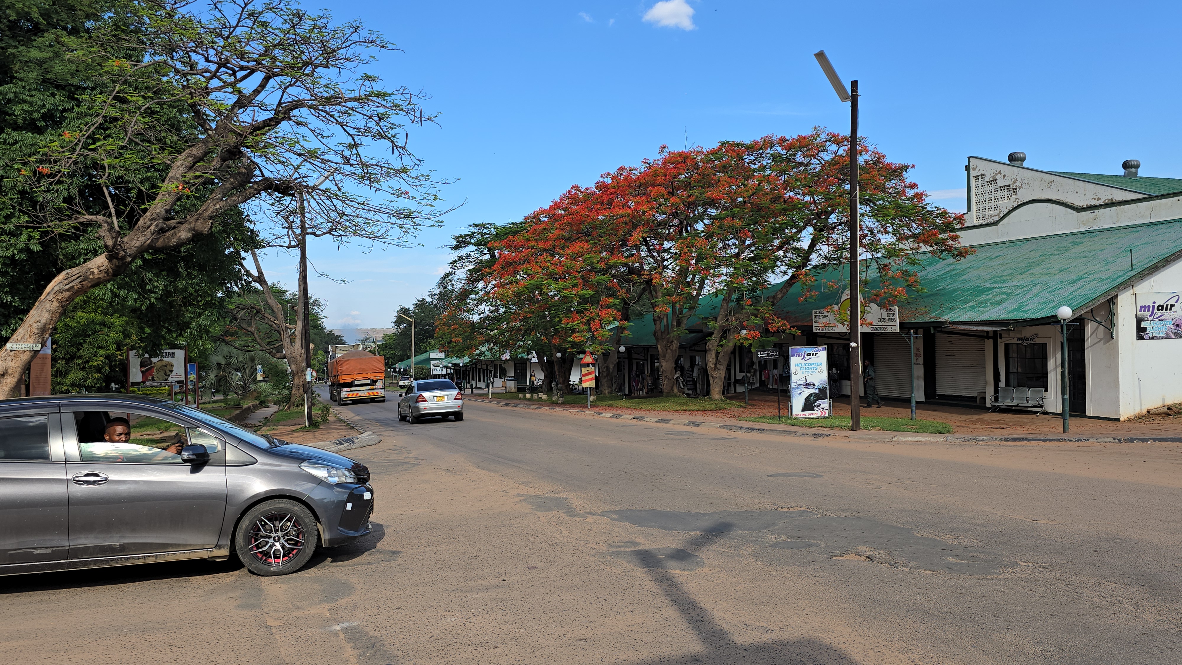 Como já disse, existe a cidade de Victoria Falls do lado zimbabuano, feita praticamente só para servir aos turistas das cataratas. Porém preferi ficar em Livingstone, na Zâmbia, porque ela é uma cidade muito maior e mais estruturada: são quase 180 mil habitantes, contra menos de 40 mil do lado do Zimbábue. E Livingstone é uma cidade grande porque, antes do turismo dominar a economia, ela foi a primeira capital da Zâmbia (na época, Rodésia do Norte). Fundada no início do século XX, virou centro administrativo e comercial da colônia britânica, estratégica por ficar perto do Zambeze e da ponte ferroviária que conecta Zâmbia e Zimbábue. Quando o projeto “Cabo ao Cairo” estava em alta, Livingstone virou parada importante — uma cidade de governo, porto e ferrovia muito antes de virar cidade turística.
