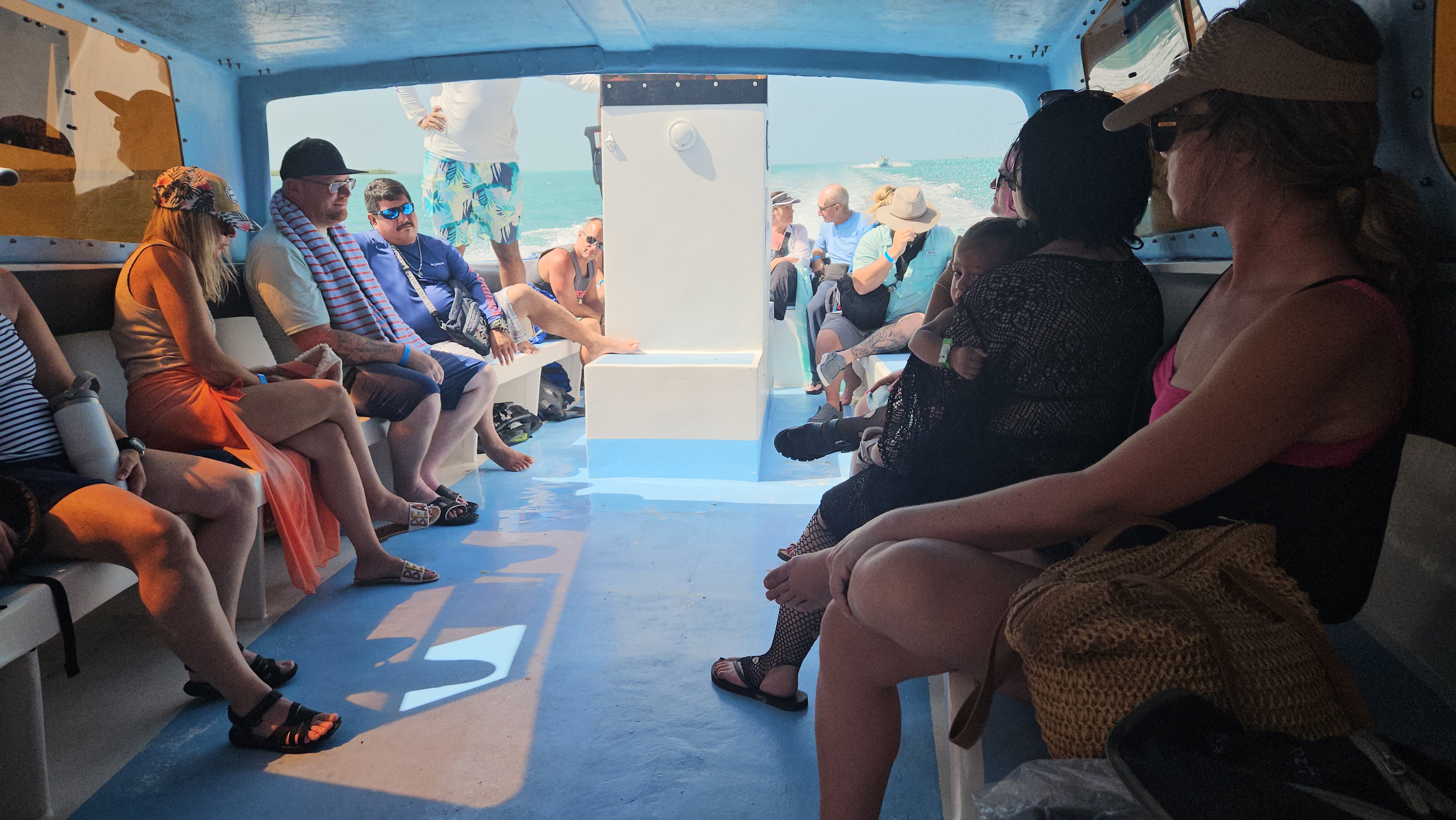 Pegamos o barco e fomos fazer o nosso passeio. E, cara, chegar a Caye Caulker foi bem demorado.