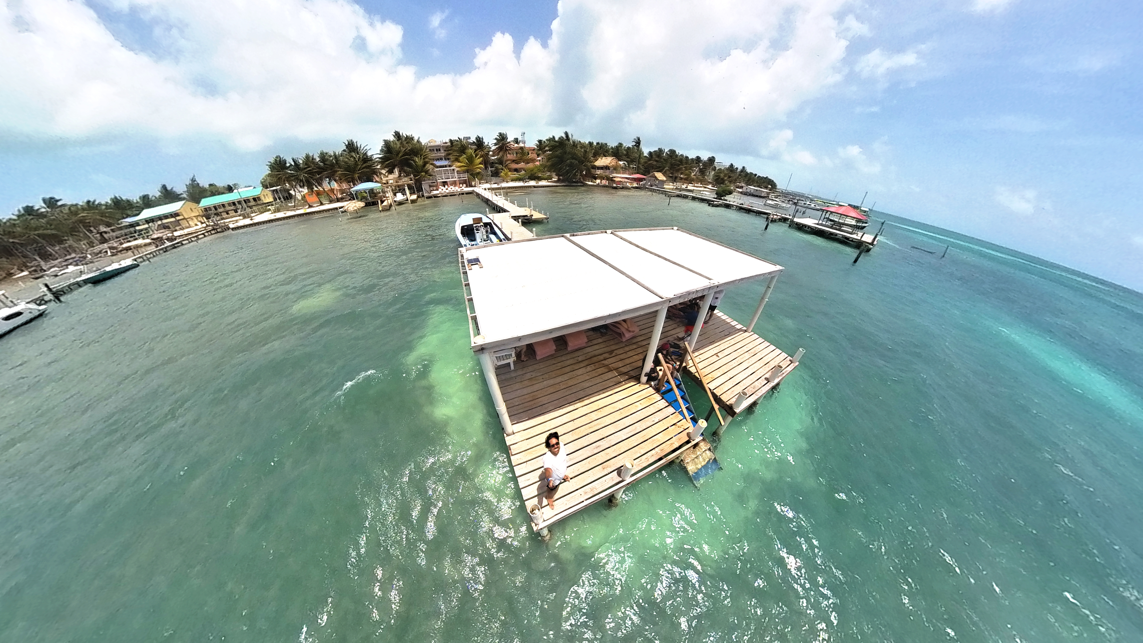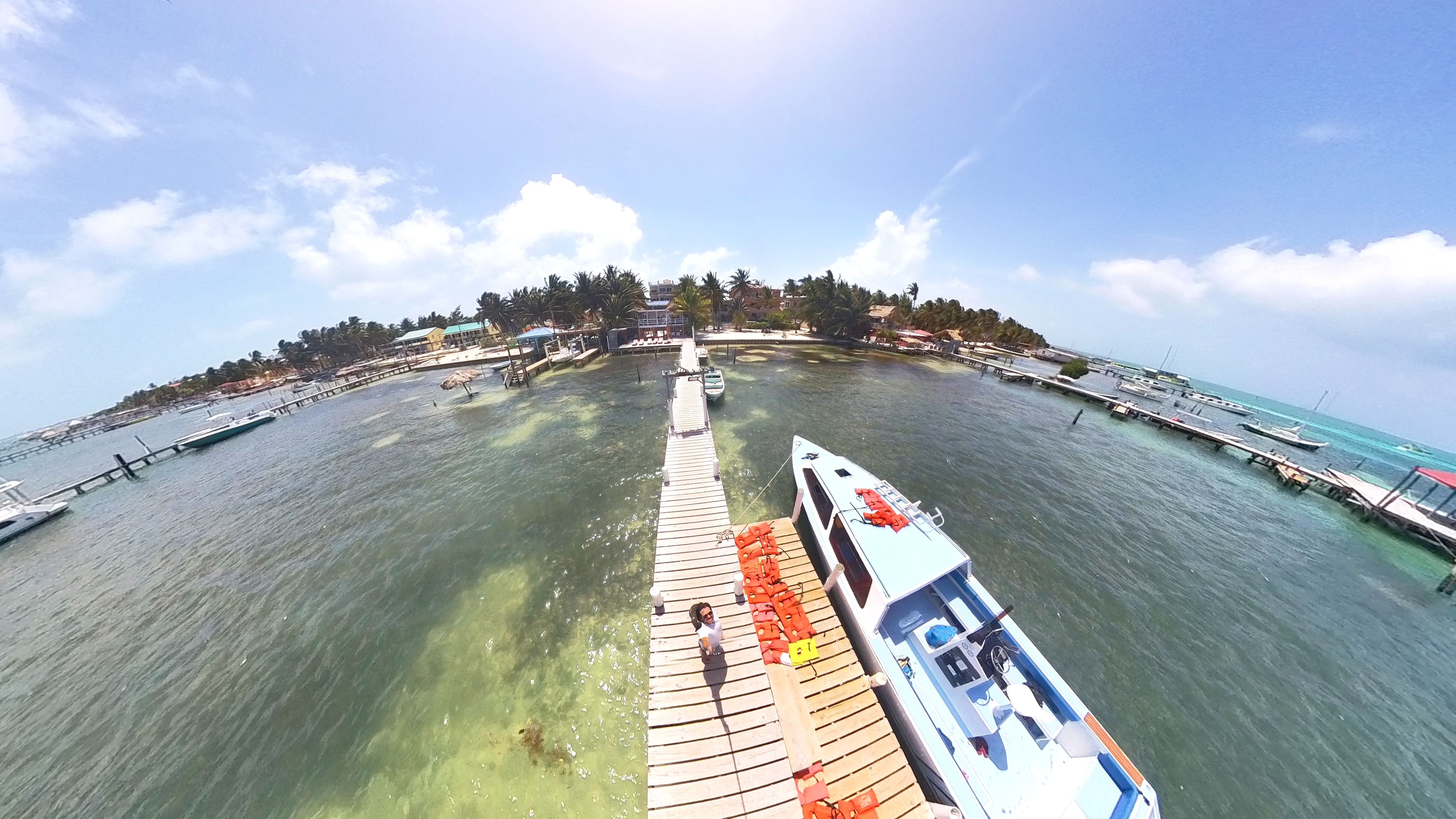 Interessante que ao contrário de todos os outros países que visitei de cruzeiros, Belize foi o único até agora em que o navio não atracou. Cara, o navio ficava no meio do oceano, aí vinha um barquinho pegar a gente e levar para o continente. Mas, assim, ainda foi uns 20 minutos nesse barquinho, era longe mesmo.