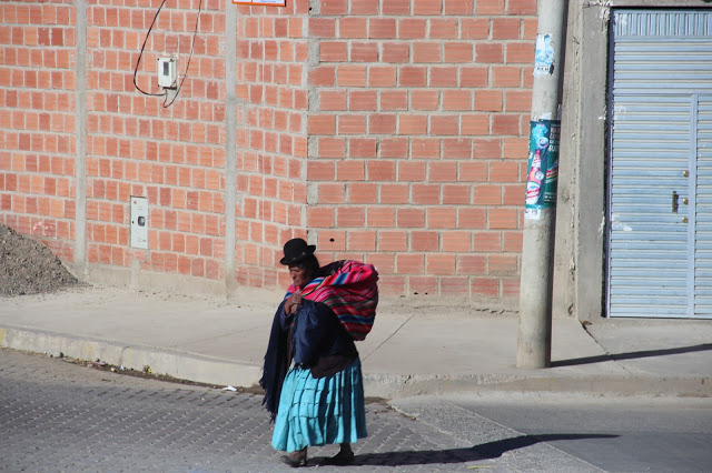 Elas geralmente tem um formato meio arredondado. Sim, as Cholitas são bem atarracadas. Isso é devido ao padrão de beleza Aimará. Enquanto para a gente uma mulher bonita é uma mulher esguia, para os indígenas das montanhas as mulheres atarracadas são bem mais atraentes. Isso ocorre porque elas precisam ser fortes para poder trabalhar e caminhar pelas montanhas. Quanto mais forte for uma mulher, mais forte será a prole que ela irá gerar. Para os Aimarás e Quechuas, “Strong and big is beautiful” (forte e grande é linda!). Inclusive a parte considerada mais atraente de uma Cholita são as suas canelas (enquanto para a gente é a… er… bunda?). Segundo o guia, uma Cholita pode estar seis meses grávida, carregando um saco de batata em cada braço, um bebê nas costas e ainda assim pode caminhar mais rápido e por mais tempo nas montanhas do que qualquer um de nós.