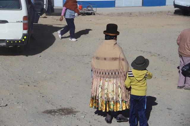 Porém nada, absolutamente nada, chama mais a atenção nas Cholitas do que o que elas tem na cabeça. Cara, é muito engraçado você ver aquela mulher toda agasalhada, com roupas coloridas, joias e na cabeça ter uma… CARTOLA MASCULINA. E MINÚSCULA! Sim, elas tem uma cartola minúscula, que não entra na cabeça, amarrada entre as orelhas! Cara, como é engraçado ver aquilo na cabeça delas, parece a todo tempo que vai cair de tão pequena que é essa cartola. Segundo o guia isso aconteceu porque durante a construção de uma estrada de ferro os ingleses encomendaram milhares de cartolas a uma empresa italiana. Porém, houve um erro, as cartolas vieram bem menores do que o encomendado e lógico que não serviu na cabeça dos gringos. Eles tentaram dar um jeito e vender para os bolivianos. Porém, os bolivianos, apesar de pequenos, tem cabeças muito grandes e as cartolas também não serviram. Alguém vai saber porque cargas d´água, mas as Cholitas simplesmente adoraram as cartolas e as adotaram como vestimenta obrigatória! E isso tem mais de cem anos! As cartolas são tão importantes para as Cholitas que elas tem um código para usá-las.