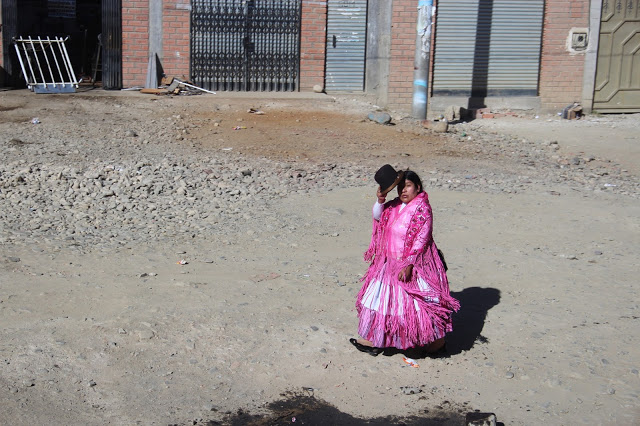 As Cholitas são facilmente identificáveis pelas ruas bolivianas e estão virtualmente por toda a parte. Inicialmente eram das zonas rurais bolivianas, em suas maioria Quéchuas ou Aimarás, que migravam para La Paz a procura de uma vida melhor. Eram discriminadas e até impedidas de entrar em certos lugares, porém, devido a muita determinação e trabalho, hoje as Cholitas são parte fundamental da economia boliviana.