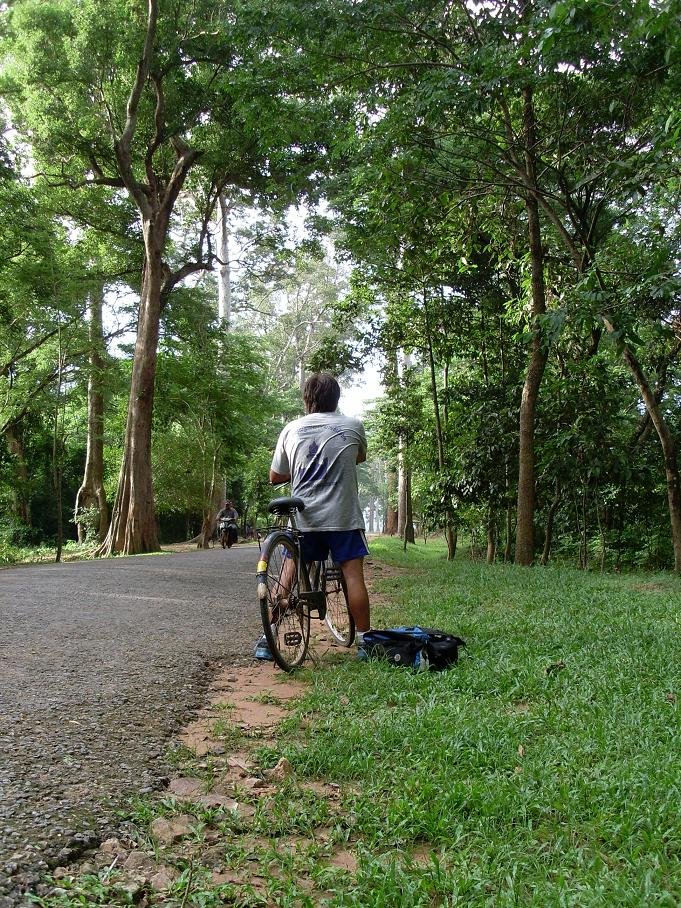 O Lonely Planet fala que você deve comprar o tíquete de pelo menos três dias. Eu comprei o de um dia e me dei por satisfeito. Se você comprar o tíquete de entrada única você tem o direito de ver o pôr-do-sol no dia em que você comprou e ainda ter o outro dia inteiro para explorar, o que no final acaba saindo como um dia e meio. Se você ver o pôr-do-sol em um dia (17:00 – 19:00), acordar cedo no outro dia (cedo MESMO! Chegar no Angkor Wat antes do nascer do sol, às cinco da manhã!) e não quiser bancar o Indiana Jones e ficar medindo o tamanho de cada ilustração na parede pra procurar segredos implícitos, um dia deve ser o suficiente. Eu comprei o de um dia, vi o pôr-do-sol e o nascer do sol. Quando deu umas três da tarde minha bike quebrou (já falei, não era Houston) e só precisei pagar um Tuk Tuk pra me levar pra ver mais um templo e pude voltar pra casa. Sério, um dia e’ suficiente! O calor e a umidade te matam, cara!