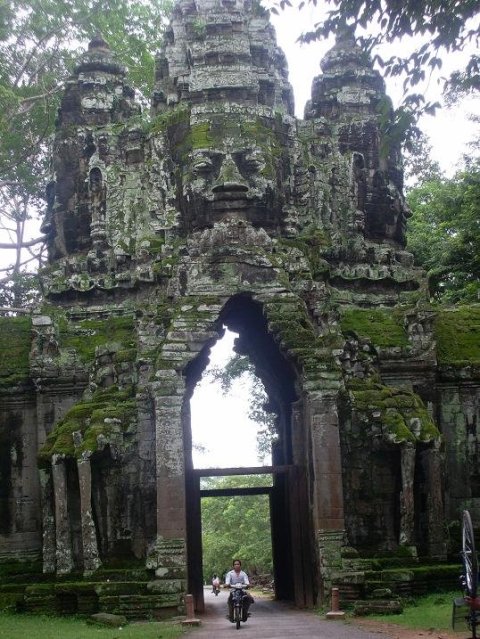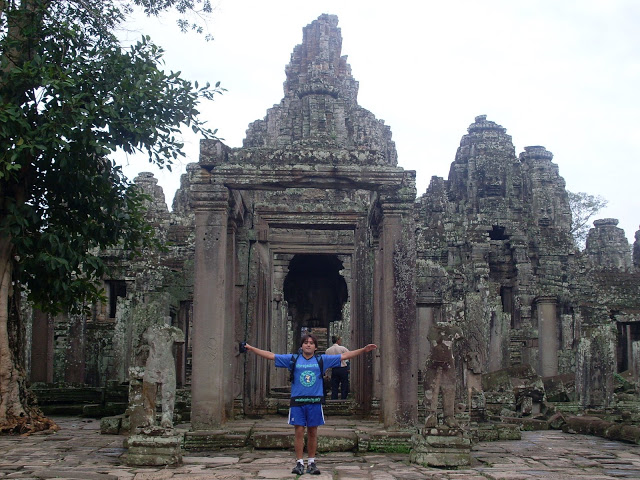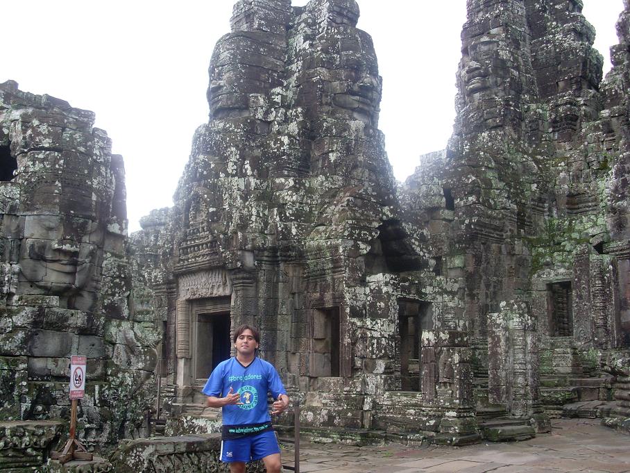 Bayon é um dos templos principais de Angkor e fica situado dentro das muralhas de Angkor Thom. Situa-se na parte central da cidade murada. Eu arriscaria a dizer que é o templo mais famoso de Angkor depois do Angkor Wat, devido ao fato do templo possuir uma pancada de retratações da cabeça do rei Jayavarman VII por todos os cantos (parecidas com as dos portoes). São 216 retratações em 54 torres diferentes. São tantas que em qualquer ponto do templo você pode ver doze ou mais cabeças de uma vez.
