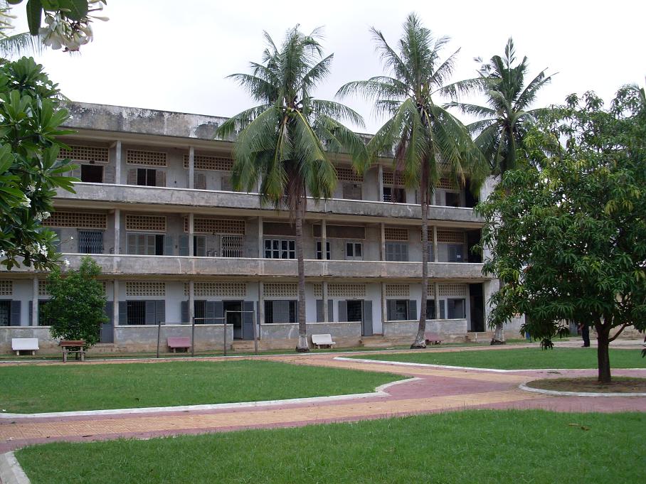 Mas o que seria de um sistema comunista se não fossem as prisões para implementar o terror? O que seria de Castro sem o “paredón” ou de Stálin sem os seus “gulags”? Pois é gente, Pol Pot também era comunista, logo, Pol Pot precisava de algo para propagar o terror. Aproveitando que ninguém no novo Camboja precisava estudar mesmo, eles adaptaram várias escolas em prisões (que eles preferiam chamar de “centros de segurança”). Tive o “prazer” de visitar um dos mais famosos, o S-21.Cara, o ambiente é apavorante, bicho. Já na entrada, você dá de cara com vários caixões onde estão enterrados os corpos das últimas vítimas de Pol Pot no S-21.