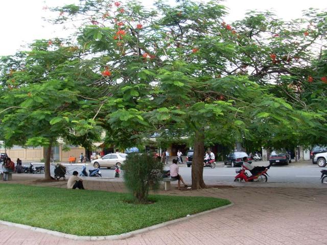 Sim, essa árvore com algumas pessoas sentadas no melhor estilo “fim de tarde no interior” fica na parte central de Phnom Penh.