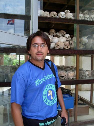 Além do S-21, pude visitar também um Killing Field (Campo da morte) próximo à cidade de Phnom Penh. Cara, teve algo de engraçado nessa história toda. Eu, saindo chocado de dentro do S-21, com todas aquelas histórias, todas aquelas caveiras, todo aquele sofrimento, tava andando e do nada vieram uma pancada de motoristas de Tuk Tuk gritando contigo: – “Ow amigo, amigo! Vamos agora ao Killing Fields? Vamo? Vamo?”