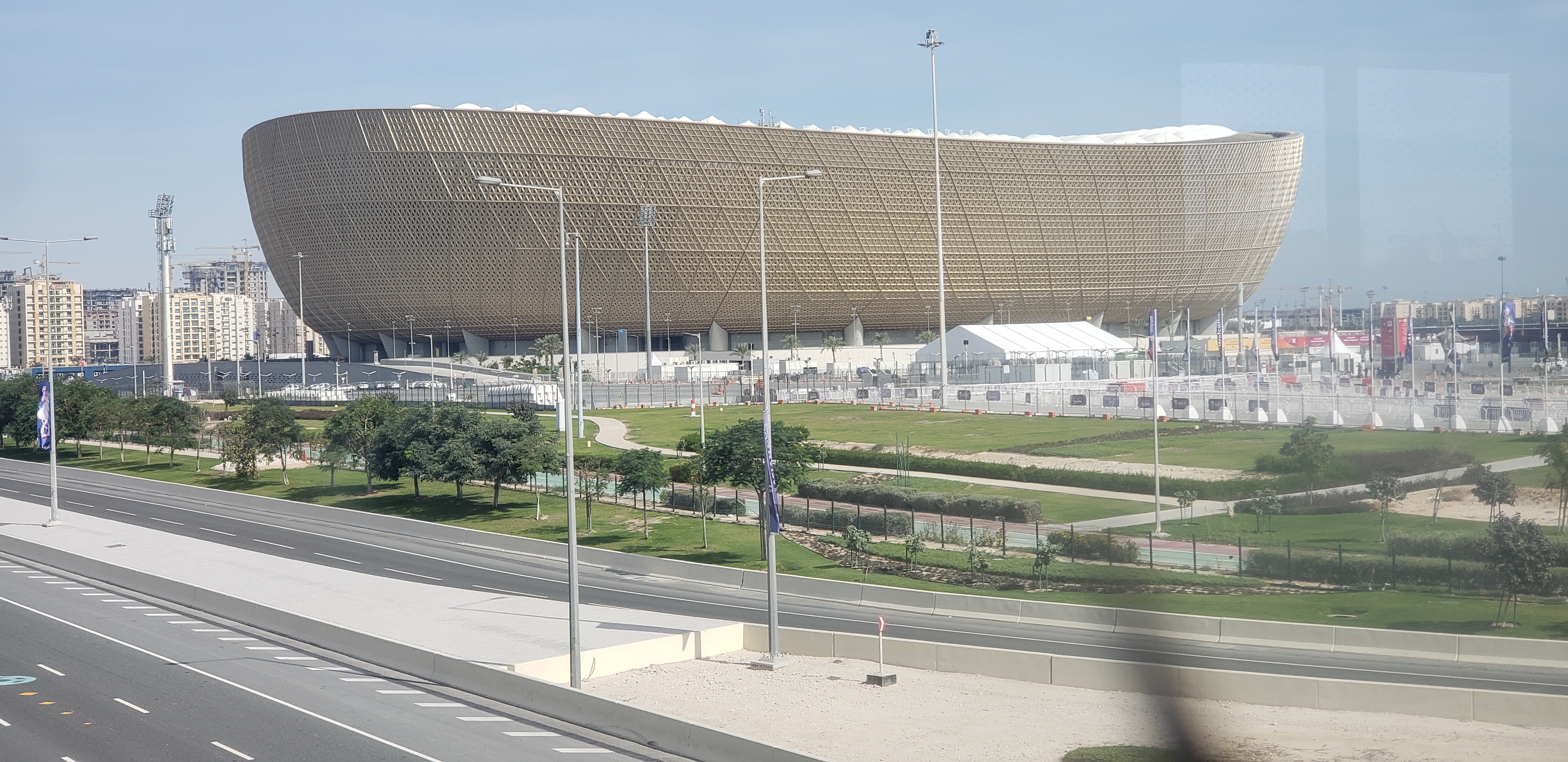 Como o Catar não tem essas frescuras de necessidade de transparência dos gastos, investimentos mínimos em saúde e educação, população indignada nas ruas por conta de desperdício de gastos em estádios que depois viram elefantes brancos e outras besteiras que a gente tem no Brasil, eles gastaram na Copa do Mundo em 2022 como se não houvesse amanhã. Eles construíram sete estádios, que mais pareciam palácios, em um país com metade do tamanho de Sergipe e com a população da cidade de Belo Horizonte. Enquanto o Brasil gastou 15 bilhões de dólares para se preparar para a Copa (e deu aquele bafafá todo), o Catar gastou 229 BILHÕES de dólares. E dane-se. Você anda por Doha e vai vendo um estádio atrás do outro. Cara, eu sou capaz de apostar que o Catar é o país com mais estádios per capita do mundo.