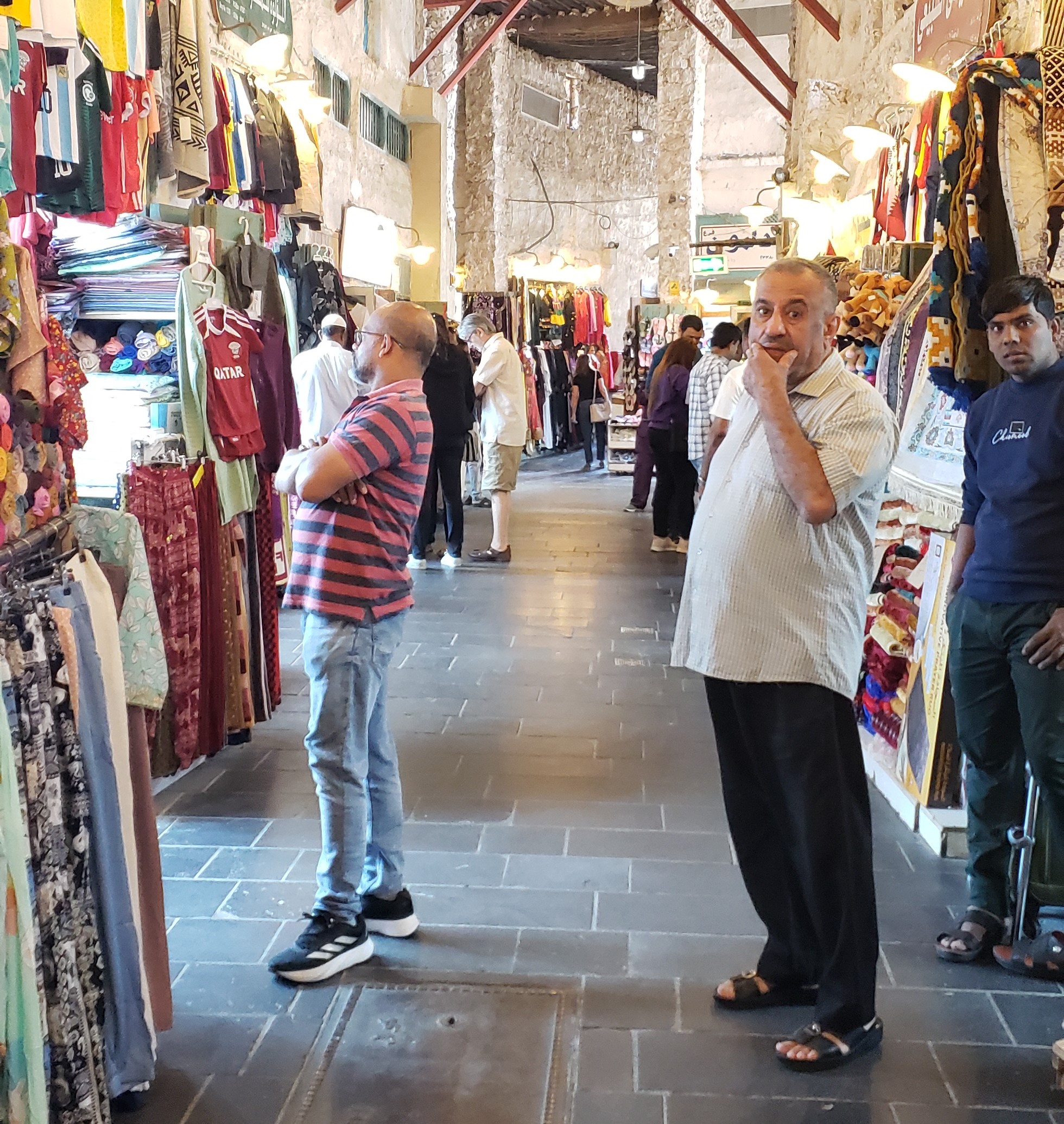 Eles geralmente enfrentam uma situação muito delicada, direitos trabalhistas mínimos e até mesmo casos de morte por exaustão. Eles chegam no Catar e entregam o seu passaporte para o contratante e só podem voltar pro país quando o contratante autorizar. O negócio é bem tenso. Isso quando não vem e são obrigados a contrair dívidas e mais dívidas ficando escravizados por dívidas sem ter como voltar para casa. Ainda assim, a maioria dos indianos e filipinos que eu pude conversar me disseram que gostavam da vida no Catar, diziam que era bem mais de boa que a vida deles em casa e ganhavam bem mais. Tudo bem que as pessoas que eu conversei falavam inglês e trabalhavam em hotéis ou restaurantes, então tinham empregos melhores, mas ainda assim isso me chamou a atenção. A parte boa deles é que se você precisa pedir informação, é só procurar um não-árabe e sair perguntando, porque ele com certeza vai falar inglês. Então isso ajudava a conseguir informação e ajuda. Os árabes em si, gerentes e donos dos negócios, não sabiam falar inglês muito bem, mas os estrangeiros sim, até porque é difícil aprender árabe, então todo mundo meio que tem que falar inglês em Doha para poder se virar.