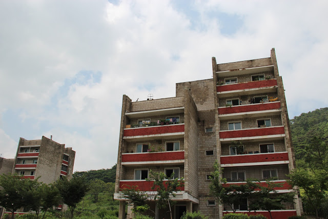 Contrastando, lógico, com o hotel Ryugyong, que se destaca novo em folha, imponente, no meio da capital.