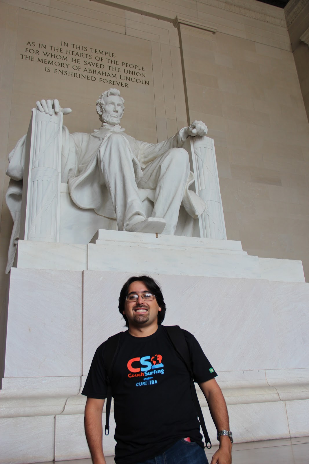Tá achando o que? Kim Il Sung também pode ser chique. Não é só porque ele é o rei da cocada preta na Coréia do Norte que ele também não pode abafar. Para demonstrar que ele também pode fazer bonito, foi lá e copiou um dos principais monumentos americanos. A estátua gigante do Lincoln sentado no Lincoln Memorial National Memorial em Washington. Cara, na hora que a gente entrou nessa biblioteca a galera parou e não conseguia parar de rir! Abaixo, o original em Washington.