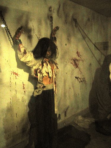 Mas mermão, a parada foi que os bichos resolveram fazer tudo real até demais. É assustador a situação lá dentro! Se eles deixassem só os relatos, já seria algo chocante (tinha prisioneiro que se alimentava de ratos e baratas), mas, não satisfeitos, os coreanos resolveram colocar algo bem mais real. Eles simplesmente pegaram vários bonecos diferentes e saíram colocando pelas celas da prisão sendo torturados. Aí mermão, era sangue pra todo lado, gritos apavorantes, pedaços de gente espalhados e por aí vai… Cara, foi bem mais assustador que todos os trens fantasmas que já visitei em parques de diversões!