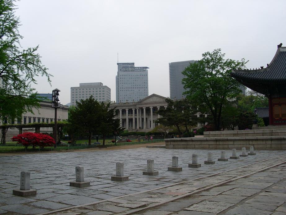 Outro templo que eu visitei e que também foi da hora, foi este que vou postando abaixo. Bonito, bem organizado, um pouco menor. Mas o que eu achei mais engraçado foi que no meio daqueles templos menores de estilo oriental, tinha um prédio imenso com várias pilastras romanas. Era uma construção que mais parecia o senado americano. Parecia até que alguém tinha colocado aquilo lá só de zoeira, hehehehe. Depois dei uma lida e vi que, assim como o Japão durante a era Meiji, a Coréia também passou por um período de modernização com esforços para se modernizar e ficar mais próximo do “Ocidente moderno” havendo assim a preocupação de absorver parte do estilo e da cultura ocidental. Por isso construíram aquele prédio lá.