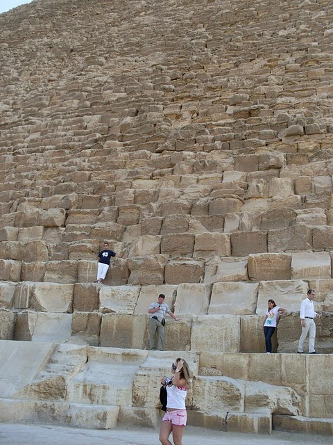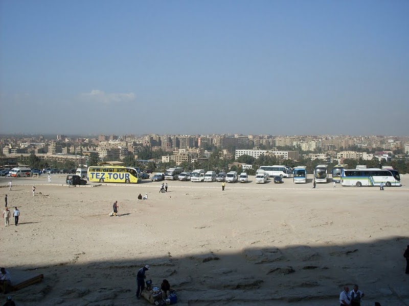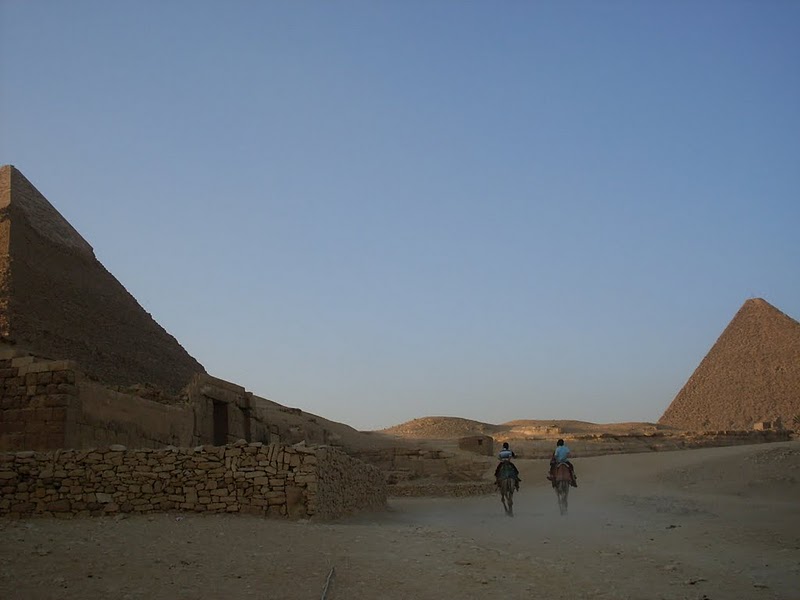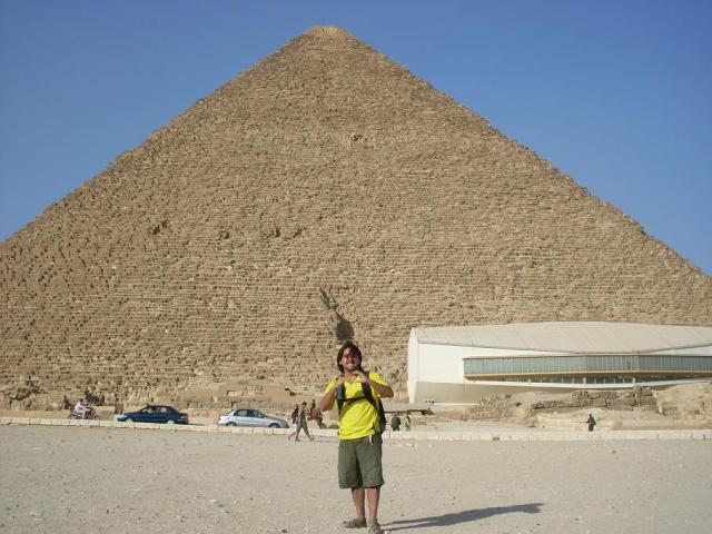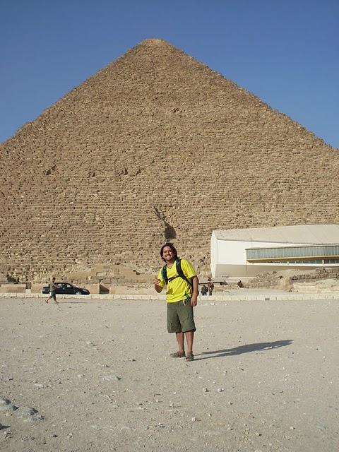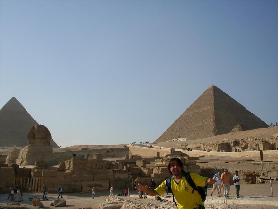 Desci do táxi e fiquei esperando outro passar. Quando ele passou deixei bem claro através de mímica que eu REALMENTE queria ir até as pirâmides. Ele entendeu e me deixou por lá. Chegando por lá, já tinha lido no meu livro mais um golpe que eles costumavam aplicar. Parece que egípcios não precisam pagar pra poder entrar nas pirâmides, ou pagavam muito barato, portanto o guia falava pra NUNCA dar o seu ingresso pra ninguém que viesse com uma desculpa de checar se você tinha pago a não ser para quem estivesse devidamente uniformizado. Mas foi dito e feito, paguei a entrada, entrei no cercado das pirâmides e foi só eu começar a pisar lá que um cara veio me perguntar onde tava o meu ingresso. Pra poder testar o que ele ia fazer, mostrei pra ele, ele pegou e começou a me explicar e guiar pelo parque. Era um guia. Ele esperava que só depois de um tempo eu percebesse que ele não era guarda, que ele não trabalhava lá checando ingresso de ninguém e depois de uns trinta minutos me explicando tudo, esperava que eu ficasse sem graça e desse uma grana pra ele. Já tinha passado por um golpe desses em
