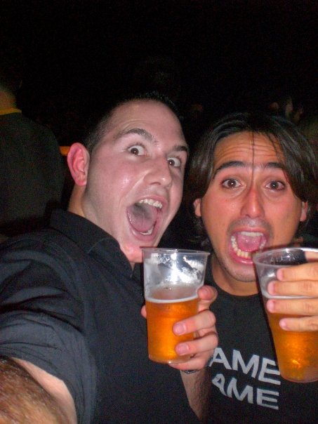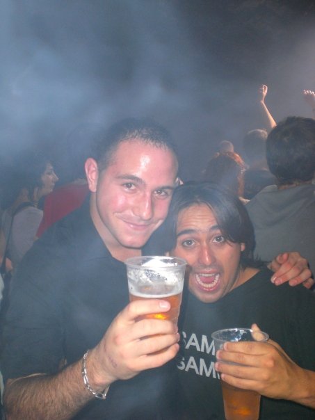 Eu e Hugo. Antes que os engraçadinhos digam besteira, meu olho estava vermelho era da alergia do gato, não era por causa de maconha não