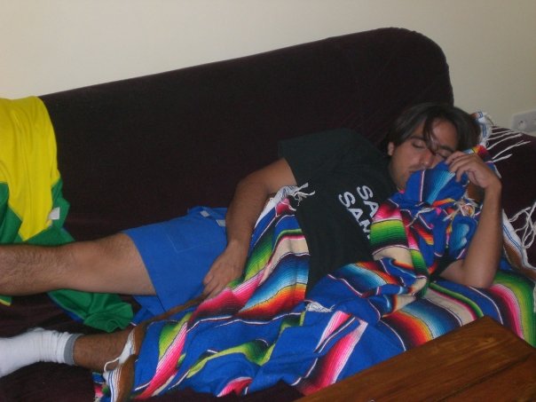 Dormindo no sofá, aproveitando que o gato não estava por perto querendo tomar meu lugar