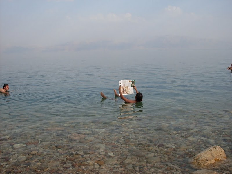 Por isso precisava de um plano. Tive que começar a confabular. Meu plano então foi o seguinte. Quando ainda estava na lanchonete de Massada esperando a hora do meu elevador pra subir, comecei a observar o lixo de lá. De repente, tive uma ideia. Havia várias garrafas de refrigerantes vazias por lá. E se, e se eu pegasse essas garrafas, fosse ao banheiro, as enchesse com água da torneira e depois corresse pro Mar Morto? Rapaz, mas eu era um gênio! Comecei a pensar quantas garrafas pegaria, mas antes fui trocar uma ideia com o atendente de uma das barraquinhas e perguntar pra ele qual seria a efetividade do meu plano genial. Ele, óbvio, me chamou só de burro e falou que, além de colocar minha pele em risco, ainda podia ter problemas com a polícia de fronteira se fizesse isso, afinal, o Mar Morto fica na fronteira de Israel com a Jordânia e um maluco nadando sozinho no Mar Morto é tudo o que eles mais querem pra poder brincar de tiro ao alvo. Falou que não valia a pena fazer isso pra poder economizar míseros cinco dólares de entrada mais três dólares de busão pra se chegar de Massada até lá. Ãhn? Sim, o meu livro-guia não dizia, mas lá de Massada tinha um busão que levava direto a uma “praia” do Mar Morto e lá eu pagaria essa mixaria pra poder ter acesso a chuveiros de água doce! Simples assim… Droga, meu plano parecia tão bem mais inteligente! Ainda por cima, ia gerar história de blog! Mas enfim, a prudência falou mais alto!