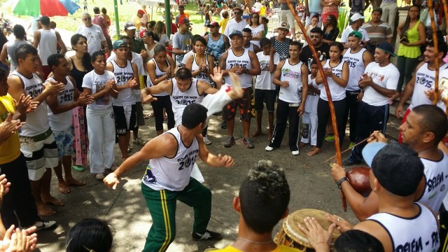 No outro dia, andando com o Lysmar, couchsurfer que me hospedou em Belém, voltei novamente para a praça do Teatro onde estava havendo algo como uma feirinha. Ambiente muito legal, apresentação de capoeira, disputa de rimas, feira de doação de animais, vários eventos ocorrendo naquilo que nos faz lembrar como as cidades podem ser vivas quando ocupadas pelas pessoas fora de suas casas.