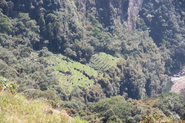 Depois de sete horas de van e quatro horas de caminhada (já que fomos batendo fotos e daí o caminho demorou mais) enfim estava eu em Águas Calientes. Os acreanos, mais espartanos, me falaram que não iriam pagar o ônibus para subir a Machu Picchu, iriam subir na perna mesmo. Uma hora sem parar. SUBINDO ESCADAS! Literalmente! Cê tá louco, minhas pernas valiam mais que dez dólares.