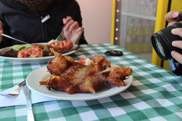 Esse porquinho chama-se Cuy. Ele é um prato típico de Cusco que é servido dessa forma gentil com a carinha de UUUUUEEENNN!