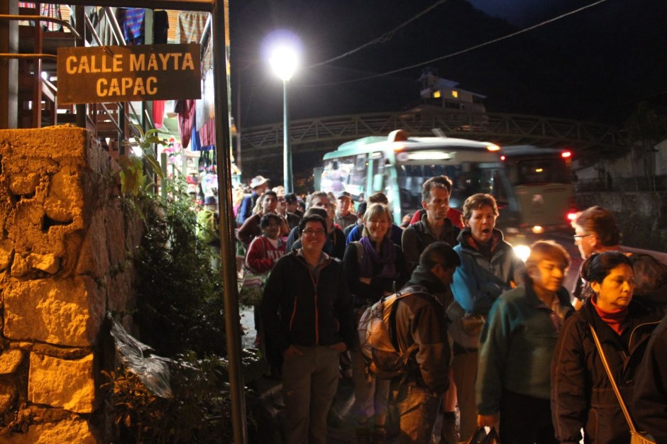 Fui dormir 23:50 e no outro dia tive que acordar 04:00 para chegar à fila e tentar pegar o ônibus das 05:30! Sim, explico. Todo mundo quer pegar o primeiro busão para chegar a tempo de ver o nascer do sol em Machu Picchu. Eu, como já relatei nesse post aqui, acho que nascer do sol é tudo a mesma coisa (inclusive vi vários quando aindaestava em Santa Bárbara confira o post aqui), não entendo essa tara de gringo por nascer do sol. Deve ser porque lá não tem sol nunca. Mas enfim, tinha que tentar pegar os primeiros ônibus pois o guia de Machu Picchu tinha marcado com a gente às seis e meia lá em cima, no máximo. Beleza, lá fui eu dormir quatro horas no total.
