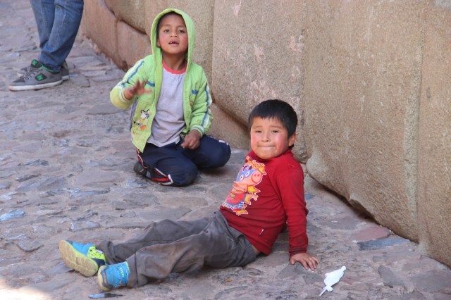 Enquanto passávamos por entre os paredões de pedra de Cusco esses meninos começaram a fazer uma farra danada próximo do meu grupo. Ri demais deles que me lembraram o quanto eu era atentado quando criança