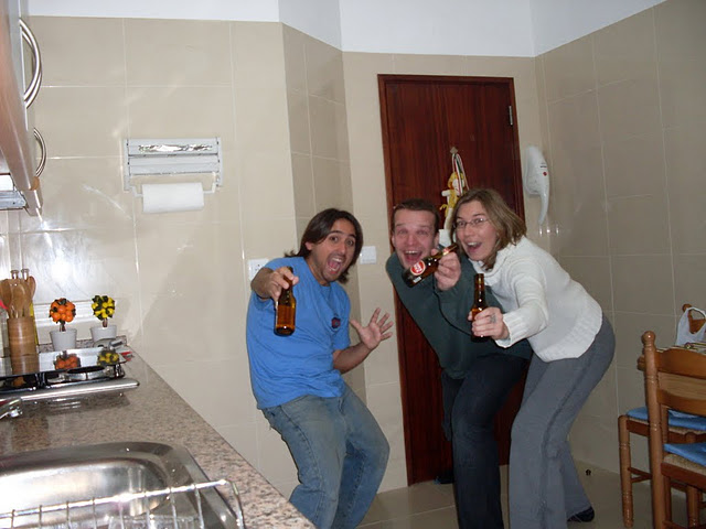 Mas nem só de desgraça vivia o Chris. Era engraçado também ouvir ele falando de como era a maneira inglesa de viver. Segundo ele, a vida na Inglaterra era tão desgraçada que eles gostavam de tomar cerveja quente e comida sem gosto. Diz ele que eles misturavam tudo, juntavam e jogavam a 300ºC no óleo quente que era pra levar o gosto de qualquer coisa. Que um dia bonito lá era quando não se chovia três dias ininterruptos. Que se achávamos que tava fazendo frio em Lisboa porque tava fazendo uns 10ºC deveríamos passar o ano inteiro a -10º pra poder saber o que era uma vida desgraçada. O bicho era engraçado demais. Pra fechar com chave de ouro, ele voltou um dia mais cedo pra Inglaterra e mandou uma mensagem pra gente “Domingo de sol em Lisboa? Aqui na Inglaterra tá -5ºC e ainda tá chovendo granizo. Nós rimos do seu frio :P!!”. Que bicho gente boa, cara!