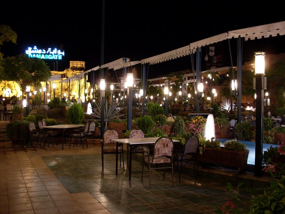 O restaurante, que fica nos subúrbios de Damasco, está aberto desde 2002.Além de fontes e réplicas de ruinas arqueológicas, o Damascus Gate também tem áreas temáticas separadas para a culinária indiana e a chinesa. Durante o verão, a época de mais movimento, até 1.800 empregados trabalham no restaurante.”