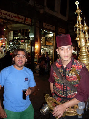 Numa das noites que eu fiquei em Damasco, o Matt me levou pra um lugar super interessante. Era parecido com um café, com almofadas coloridas pelos cantos e algumas pessoas conversando e tomando cerveja. É meio complicado de explicar, mas o ambiente respirava um agradável ar de liberdade devido aos assuntos discutidos por todos que se encontravam por lá. Dentre todas as pessoas que se encontravam, uma se destacava: Era um árabe com uma idade um tanto quanto maior que a maioria das pessoas que lá estavam (ele parecia ter uns 35 anos) e todo mundo parava pra poder ouvir as histórias do cara.