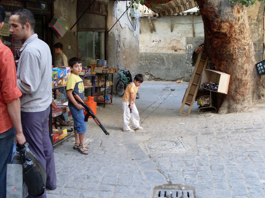 Depois de alguns minutos em que eu tentava desesperadamente alguém que pudesse me levar ao menos para um albergue qualquer na cidade (em albergues as pessoas SEMPRE falam inglês), tive contato pela primeira vez com um dos meus mais sérios problemas que eu pude enfrentar por TODOS os países árabes que pude visitar. Na Síria então… Imagina… O país faz parte do eixo do mal e, dia após dia, recebemos notícias da Síria relacionados a terrorismo. Tudo só podia piorar. Enquanto estava tentando falar com os taxistas um soldado (sim um SOLDADO, com roupa camuflada e tudo, não um policial) fortemente armado e com um fuzil começou a vir na minha direção e começou a gritar e chamar a minha atenção. Pronto, era só o que me faltava! Além de NINGUÉM conseguir falar comigo, eu não ter a mínima ideia de como chegaria na casa onde eu devia ir, só faltava essa. Só faltava eu ser preso apenas pelo fato de estar andando pela rua sem fazer nada. Essas coisas só acontecem em países assim mesmo.