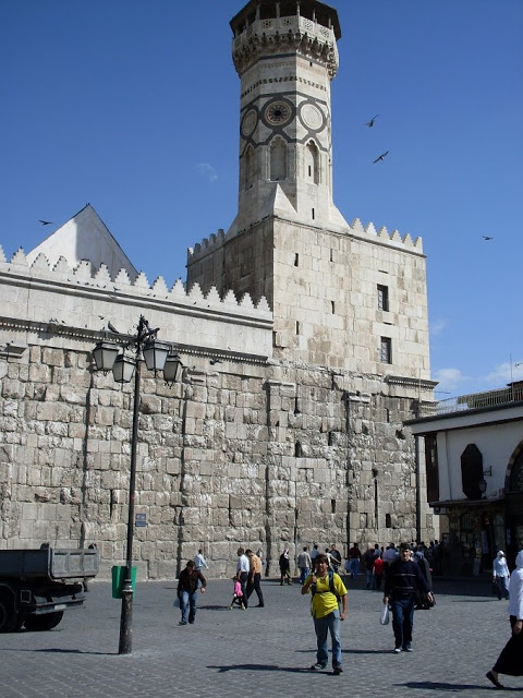 O primeiro lugar que fomos não podia deixar de ser a Grande Mesquita de Damasco, a Mesquita Umayyada . Diz a lenda que o califa al-Walid mandou erguer a mesquita para que os muçulmanos não se deixassem vislumbrar pelas diversas igrejas erguidas e existentes ao redor de Damasco. A mesquita é realmente GIGANTESCA e muito bem elaborada, uma construção extremamente imponente.