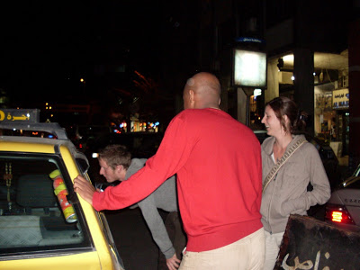 Matt e o suíço negociando com o taxista. Reparem a mina rindo com uma cara de “esse taxista só pode ser lunático…”