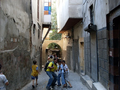 Perguntei o que estava acontecendo ao Matt e ele me explicou que o Ramadã estava terminando exatamente no dia em que passeávamos por Damasco. O Ramadã é um mês de muitas privações (cara, não deve ser fácil ficar o dia inteiro sem comer nada e, principalmente, sem beber nem um gole d’água) e quando ele acaba as pessoas que realmente o seguiram a risca ficam extremamente gratificadas de terem feito esse esforço em amor a Deus. Devido a isso, celebram bastante mais um mês de dever cumprindo e com isso trocam presentes e saem às ruas para poder celebrar. Algo como o nosso Natal, com a diferença que ninguém nem lembra mais porque celebramos o Natal e quem foi o “barbudo encrenqueiro”, com algumas palavras cafonas como paz e amor entre os homens, que nasceu nesse dia… As crianças com seus brinquedos novos saem para ficar brincando e os “homenzinhos” saem as ruas com suas roupas novas para “se amostrar” pras meninas. Mais ou menos o que aos doze anos você fazia no sábado quando ia ao shopping com os amigos pra poder falar com as minas (pelo menos no Maranhão, heheh). Isso demonstra que árabe ou católico, a gente “sabe mesmo o que a gente quer”…