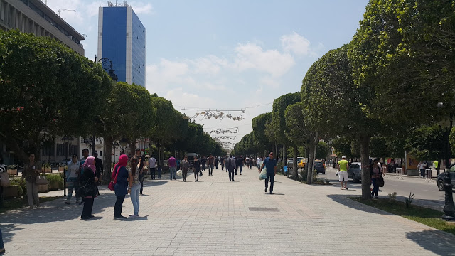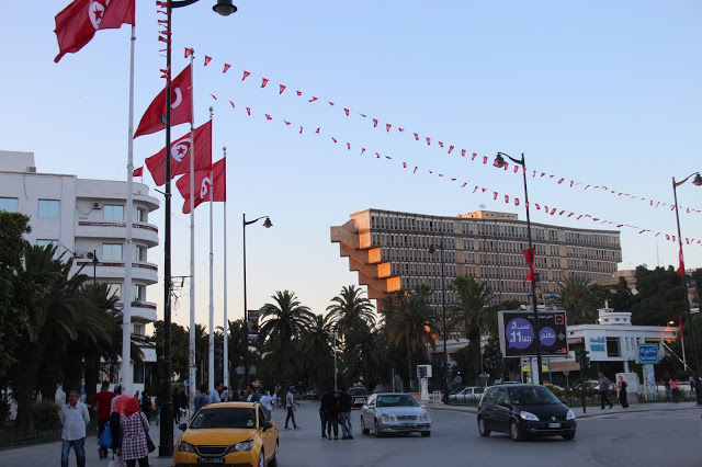 Túnis é uma cidade rasgada por autoestradas e, principalmente, flores. Sim, flores! Cara, como tem flores pelos lugares. Os tunisianos são apaixonados por flores e por todas as casas que você anda você vê arvóres floridas saindo dos muros das casas. É uma cena muito bonita. Até mesmo nas rodovias do país é possível ver arbustos floridos. Já tinha visto cidades arborizadas, mas Túnis é, na verdade, além disso, é uma cidade florida!